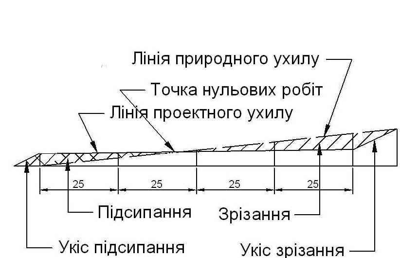 зменшити знайдену таким чином позначку на товщину рослинного шару, який зрізується до початку планування майданчика та використовується для озеленення. Можна вважати, що його товщина становить 25 см.
