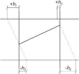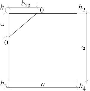 h1, h2 – робочі позначки прилеглих кутів квадрата.