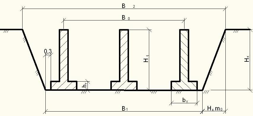 Hк – глибина котловану, треба приймати на 0,2 м більшою ніж висота фундаменту (дод. 3).