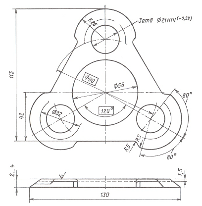 Шайба стопорная предназначена для стопорения болтов М20 или М24 торцевого крепления подшипников на шейке оси от самоотворачивания, изготавливается из стали марки 10 кп по ГОСТ 16523 из прокатного листа 6Т-1,5 ГОСТ 19904 и должна соответствовать размерам, приведенным на рисунке 10.10.
