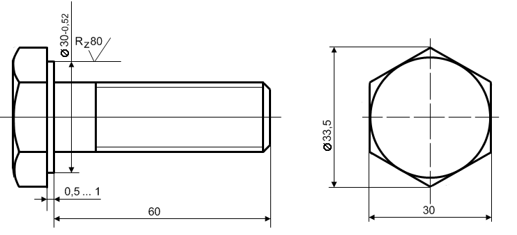 Рисунок 10.11 Болт М20-6g х 60.4.8 с резьбой выполненной