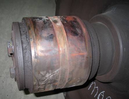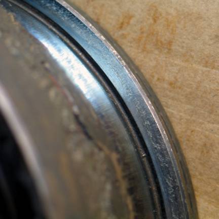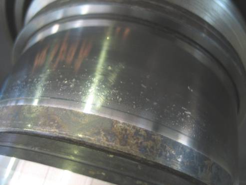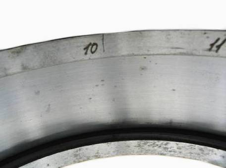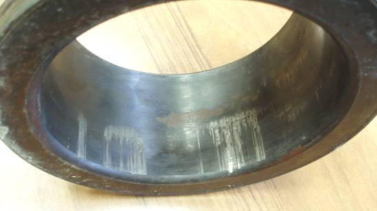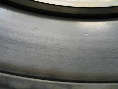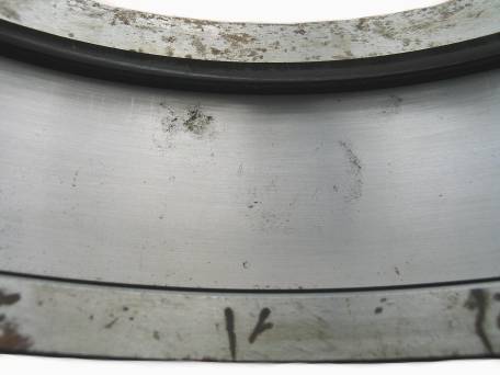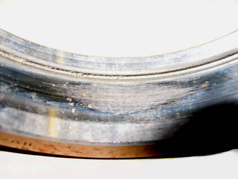 1.5.05 Круговые полосы на торцевых поверхностях - результат проворачивания кольца относительно торца внутреннего кольца переднего подшипника и элементов торцевого крепления при ослаблении усилия его затяжки.