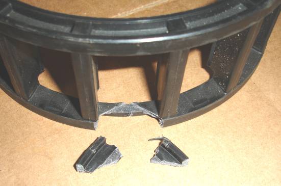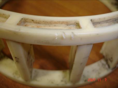 1.6.01 Излом полиамидного сепаратора - полное разрушение сепаратора от концентраторов напряжений в результате действия перегрузок при взаимодействии с роликами, а также механических повреждений.