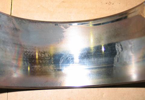 Визуальный контроль. Дефект характерен для случая износа центрирующей поверхности сепаратора и наиболее распространен при работе подшипника с латунным сепаратором. Часто приводит к латунированию контактируемых поверхностей и образованию микротрещин. Латунирование - насыщение поверхностных слоев кольца латунью, при этом, поверхность кольца приобретает желто-золотистый оттенок. |