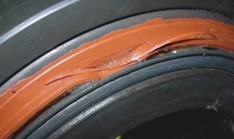 2.4.01 Выделение смазки в зоне уплотнения - наличие валика смазки в зоне встроенного уплотнения в результате ее миграции из подшипника, как при нормальных условиях работы, так и при повышенном нагреве.