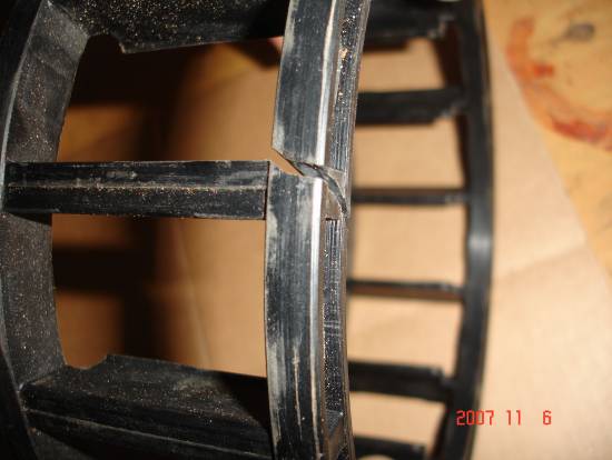 1.5.03 Сколы - нарушение целостности кольца вызванное: перегрузками, создающими высокие напряжения и приводящими к растрескиванию и раскалыванию при наличии концентраторов напряжений в виде дефектов металла.