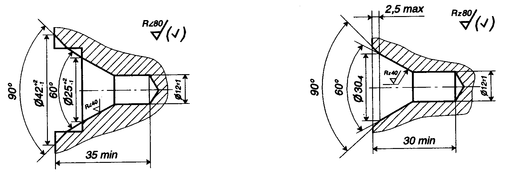 Рисунок 7.4 - Центровые отверстия на торцах осей