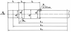 5) - для оси с конусообразной средней частью l3 = 265 мм.