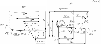 Допускается обрабатывать поверхность катания ободов колес в соответствии с одним из профилей поверхности катания, приведенных на рисунках 8.4 и 8.5, при этом качество выполнения обработки производится соответствующими максимальными шаблонами.