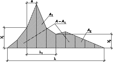 Включающая вершину часть линии влияния длиной 1 и площадью A1 (рисунок Д.2), ограниченная ординатами y1 и y2, загружается на максимум (в соответствии с 1 и 1); остальная часть линии влияния (A – A1) загружается нагрузкой 9,81К кН/м пути.