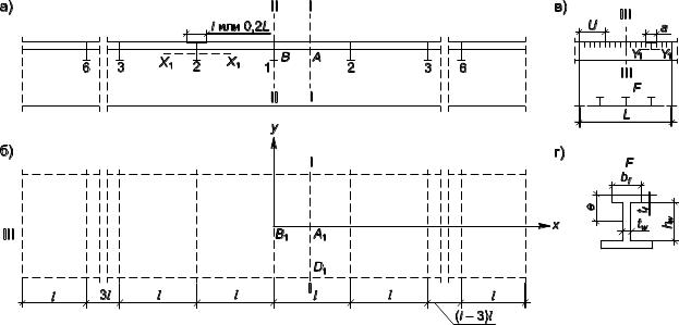 Ф.2.13.2 Ортотропную плиту допускается условно разделять на отдельные системы — продольные и поперечные ребра с соответствующими участками листа настила (рисунок Ф.3).
