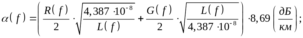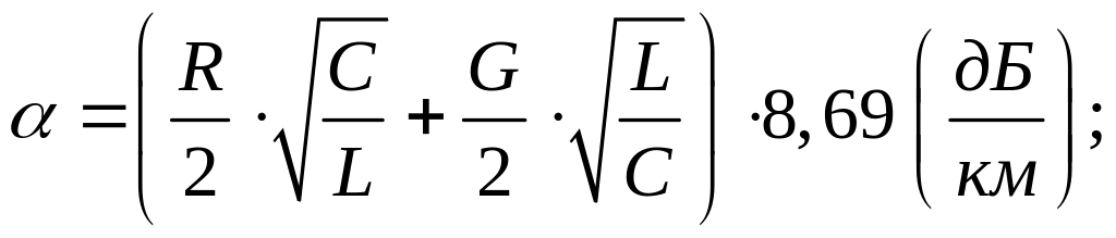 Расчет коэффициента затухания и коэффициента фазы, в области высоких частот, можно производить по упрощенным формулам: