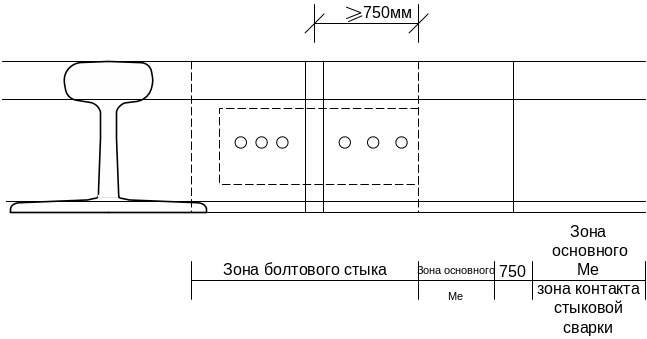 Зона основного металла – это зона между болтовыми или сварными стыками на участках бестыкового пути: