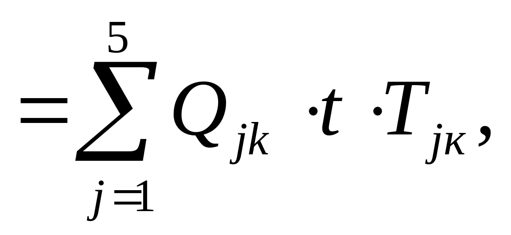 где Qjk – количество IP-разговоров за год по j-й тарифной зоне в k-ое время суток; t – средняя длительность одного IP-разговора в мин (для всех вариантов t = 5 мин); Tjk – тариф за 1 мин связи с j-й тарифной зоной в k-ое время суток (день, ночь).