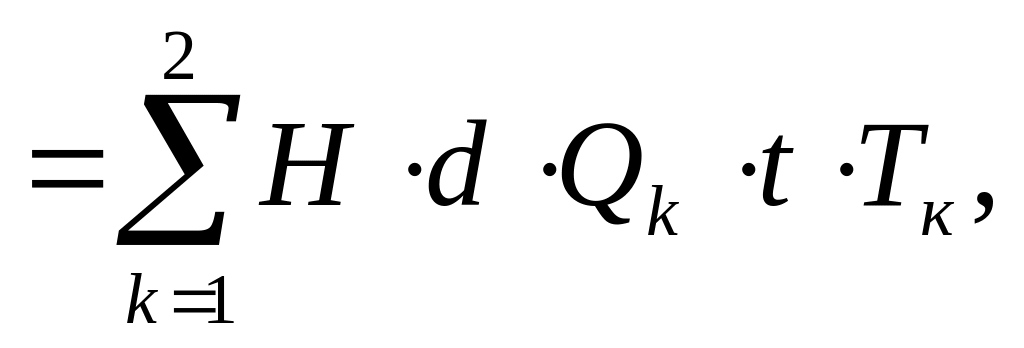 где H - численность населения города А, в тыс. чел.; d – процент проникновения модемного доступа к сети Интернет среди населения; Qk – среднее количество сеансов одного пользователя за год в k-ое время суток; t – средняя длительность одного сеанса модемного доступа к сети Интернет в мин (для всех вариантов t = 15 мин); Tk – тариф за 1 мин доступа к сети Интернет в k-ое время суток (день, ночь), руб/мин.