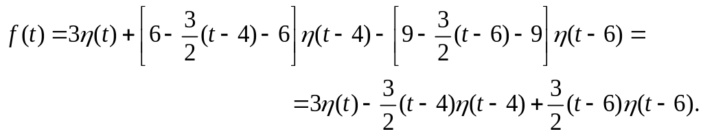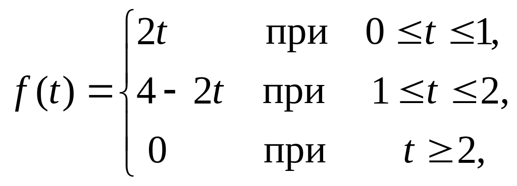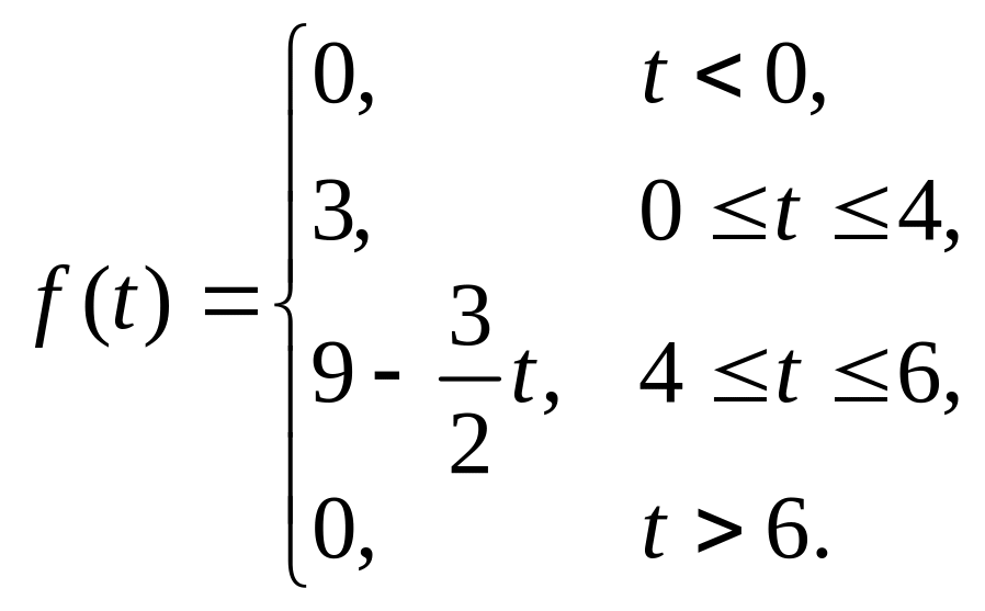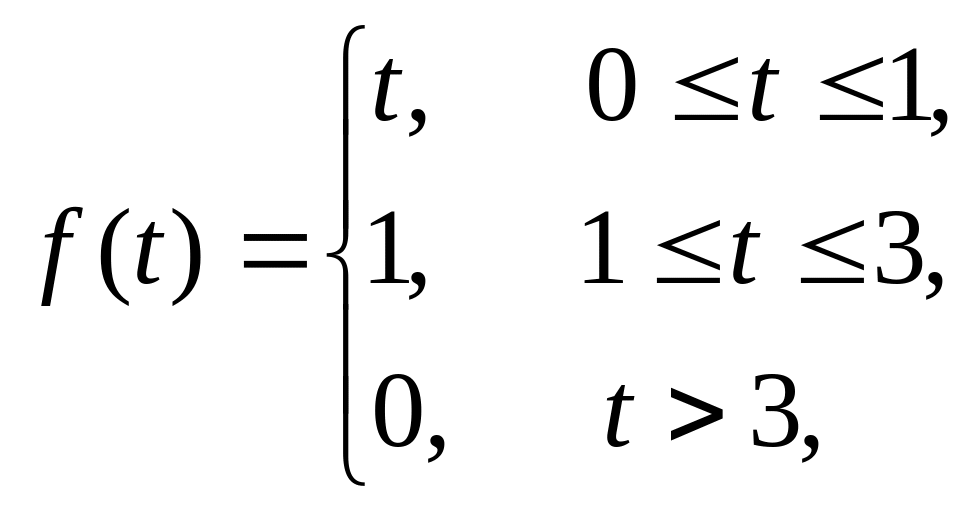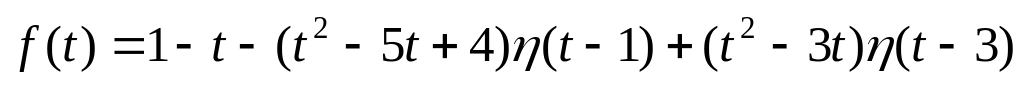Пример 123. Найти изображение составной функции , предварительно записав ее с помощью функции Хевисайда одним аналитическим выражением.
