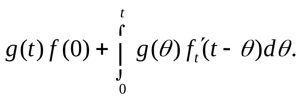Правую часть этой формулы называют интегралом Дюамеля. В силу равноправности функций f и g ее можно записать и так