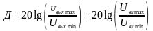 Динамический диапазонД – этовыраженное в отношение наибольшего выходного (или входного) напряжение к наименьшему в пределах линейной части амплитудной характеристики: