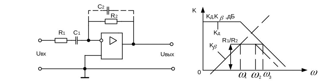 - •Усилитель, построенный на одном операционном усилителе (оу)