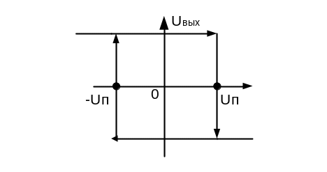Задержку переключения на величину называется гистерезисом(рис 2.45). При этом на передаточной характеристике появляются замкнутый контур, называемый петлёй гистерезиса.