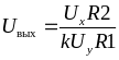 Для получения делителя одного напряжения на другое достаточно в цепь обратной связи (ОС) инвертирующего усилителя включить перемножитель (рис 2.41):