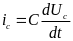 Ток через конденсатор связан с приложенным к нему напряжением следующим соотношением: