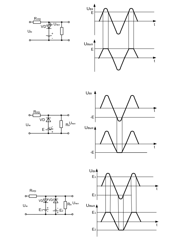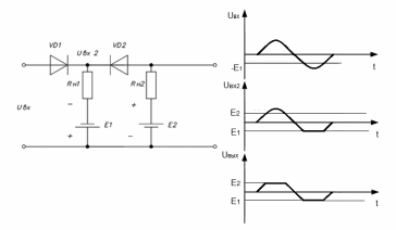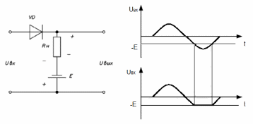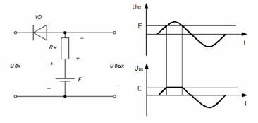 Для получения порога ограничения, отличного от нуля, последовательно с нагрузкой включают источник постоянного напряжения Е.