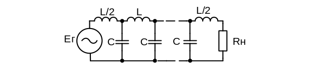 Однако для уменьшения габаритов линии следует уменьшать число ячеек n ,а L и C должны увеличиваться.