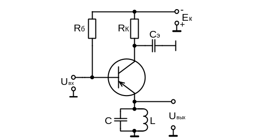 Рисунок 3.28Генератор с контуром ударного возбуждения в цепи эмиттера.