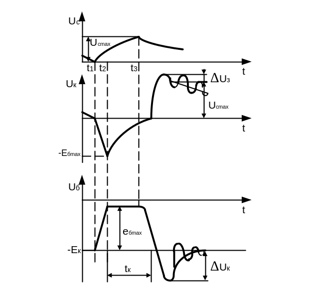 в момент t3 близко к нулю, то коллекторный ток с возвращением рабочей точки в активную область начинает уменьшаться. В результате скорость нарастания магнитного потока уменьшается – в базовой обмотке индуцируется меньшая ЭДС еБ, что дополнительно снижает отрицательный потенциал базы, т. е. коллекторный ток еще больше уменьшается и т. д.