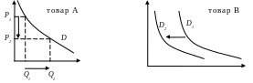 Рассмотрим, как связаны рынки некоторых товаров. Взаимозаменяемые товары удовлетворяют одну и ту же потребность, т.е. используются один вместо другого. Снижение цены на один товар при неизменном спросе на него влечет за собой рост величины спроса и, следовательно, уменьшение спроса на товар-заменитель.