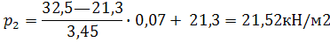 Ординаты на уровне промежуточных узлов рn, кН/м2 |
