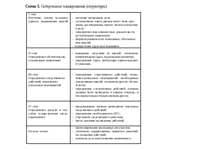 Планирование как мыслительный процесс имеет свое материализованное выражение. Таким концентрированным воплощением мыслительной деятельности и будет план. Необходимо отметить, что план расследования конкретного уголовного дела - это не процессуальный документ; его форма произвольна и должна выбираться самим следователем с учетом практики расследования предыдущих уголовных дел, способностей, криминалистических рекомендаций.