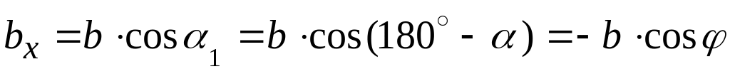 Проекция вектора на ось есть скалярная величина, равная произведению модуля проектируемого вектора на косинус угла между положительным направлениями оси и направлением вектора (рис. 1.12):