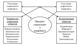 Социальный конфликт – это противоборство социальных групп и отдельных индивидов, которое заключается в разногласии во мнениях и взглядах, в стремлении занять лидирующее положение в обществе и оказывать влияние на огромные массы людей.[16]