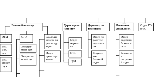 На схеме (рис.14) представлена организационная структура управления судостроительно-судоремонтного завода со всеми уровнями управления и подразделениями.