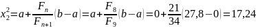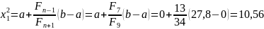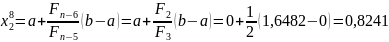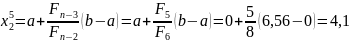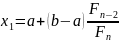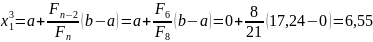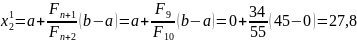 Шаг 1. Задаются начальные границы отрезка и число итераций n, рассчитывают начальные точки деления: