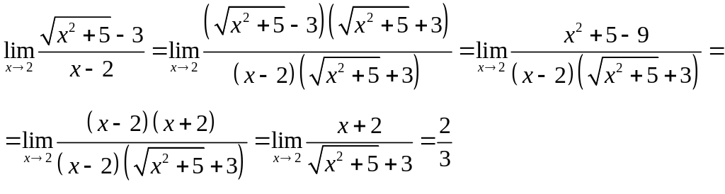 Щоб розкрити невизначеність виду задана ірраціональними виразами, необхідно позбутись від ірраціональності, помноживши на спряжений вираз