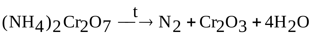 3. Соли, в которых анион является сильным окислителем. При нагревании происходит окислительно-восстановительная реакция (реакция внутримолекулярного окисления и восстановления):