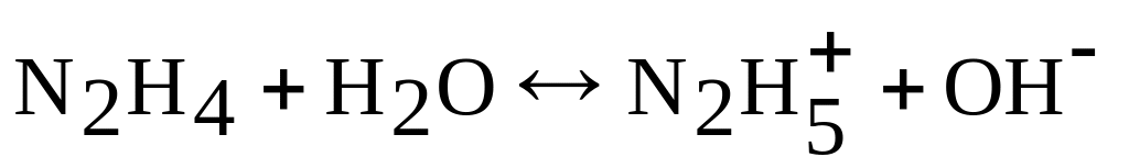 1. Гидразин проявляет основные свойства, как и аммиак. Но из-за отталкивания свободных электронных пар соседних атомов азота гидразин является более слабым основанием, чем аммиак: