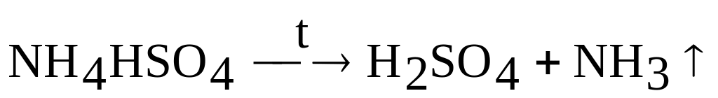 2. Соли нелетучих кислот. Аммонийные соли нелетучих кислот (сульфаты, фосфаты, силикаты и др.) при нагревании разлагаются с выделением аммиака и образованием кислоты:
