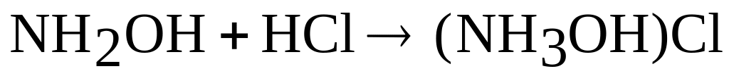 1. Гидроксиламин является слабым основанием (основные свойства за счет неподеленной электронной пары на атоме азота):