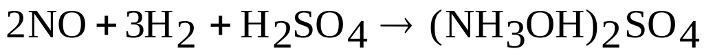 2. С высоким выходом гидроксиламин в форме сульфата получают каталитическим восстановлением оксида азота (II) на палладиевом катализаторе: