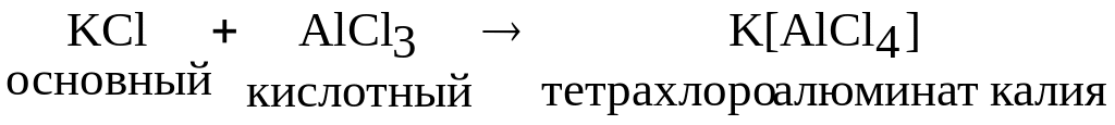 Амфотерные хлориды взаимодействуют как с основными, так и с кислотными хлоридами с образованием комплексных хлоридов: