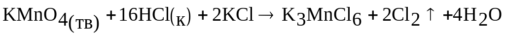 2. В лаборатории хлор поставляется с производства в баллонах. В лабораторных условиях хлор получают взаимодействием концентрированной соляной кислоты с окислителями – KMnO4, MnO2, K2Cr2O7 и др.: