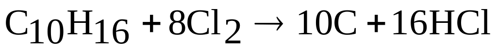 Зажженные на воздухе углеводороды (с большой молекулярной массой) продолжают гореть в атмосфере хлора, образуя при этом хлороводород и сажу.