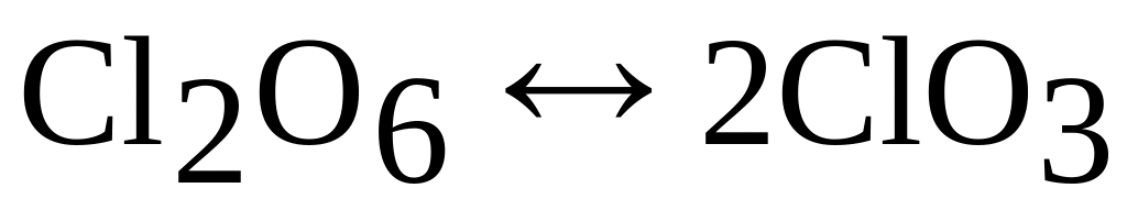 Оксид хлора (VI) Cl2O6 (ClO3) – вязкая красная жидкость. При обычных условиях Cl2O6 постепенно разлагается на ClO2 и О2. В газовой фазе происходит распад: