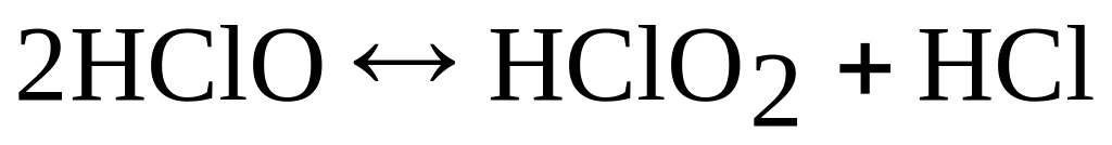 Хлорноватистая кислота – слабая кислота. Раствор хлорноватистой кислоты и гипохлоритов имеют желто-зеленую окраску, резкий запах. В водном растворе HClO диспропорционирует: