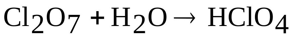 При растворении Cl2О7 в воде образуется хлорная кислота HClO4 (ангидрид хлорной кислоты):