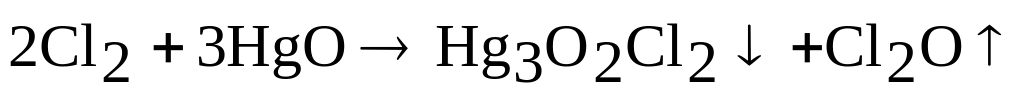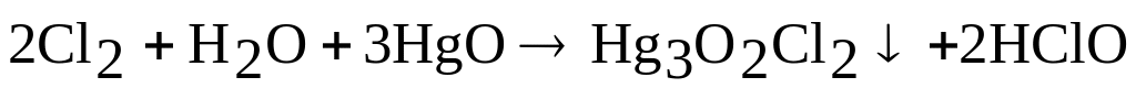 Хлорноватистая кислота HClO в свободном состоянии неустойчива, быстро разлагается на ClO2 и Н2О, поэтому существует только в разбавленных водных растворах. Получают путем взаимодействия газообразного хлора с оксидом ртути (II):